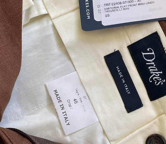 Drake's Sartorial Irish Linen Size 38 Coffee