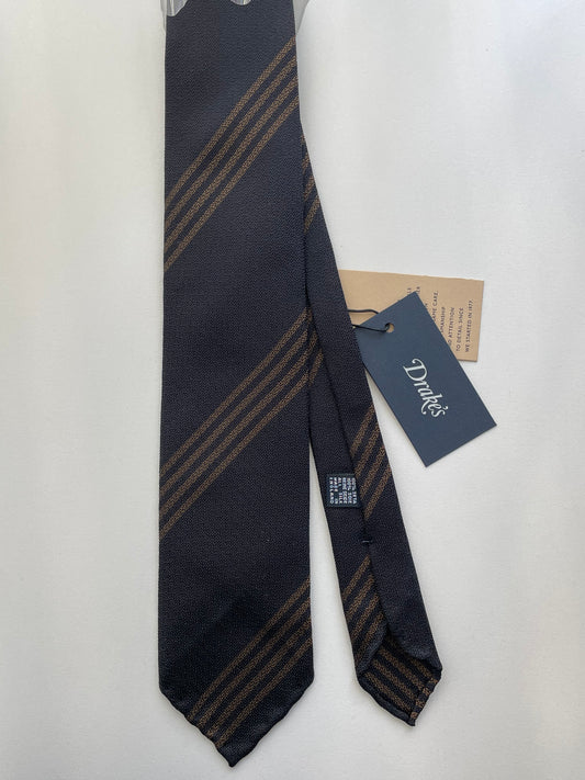 Drakes Handmade Striped Tipped Silk Tie With Tag