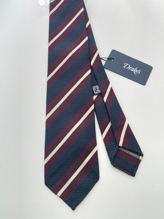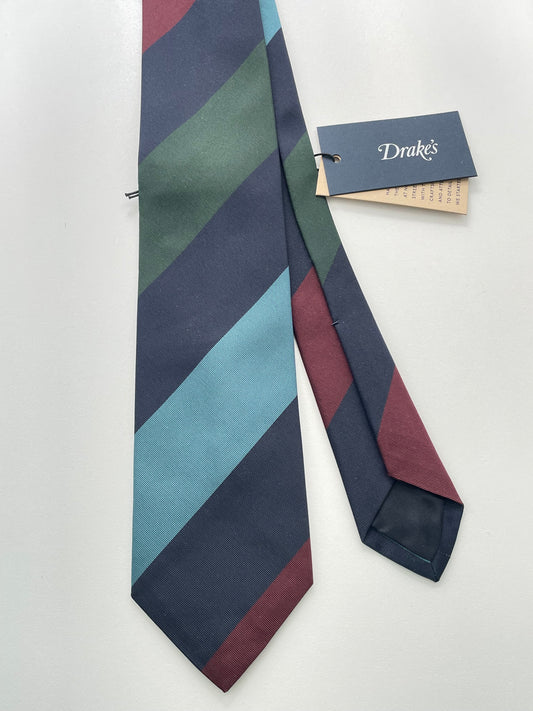 Drakes Hand-rolled Edge Block Multi Stripe Silk Handmade Tie With Tag
