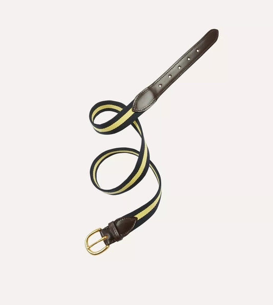 Aimé Leon Dore x Drakes Stripe Webbing Leather Belt with Brass Buckle
