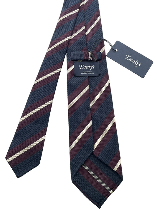 Drakes Handmade Striped Tipped Silk Tie With Tag