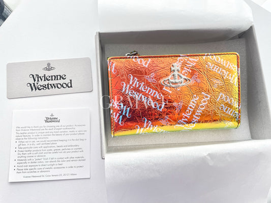 Vivienne Westwood Iridescent Small Flap Card Holder Wallet Metal Orb
