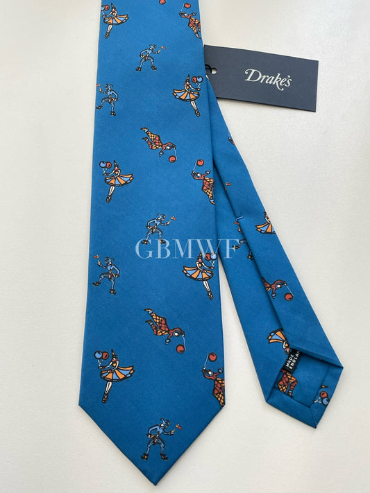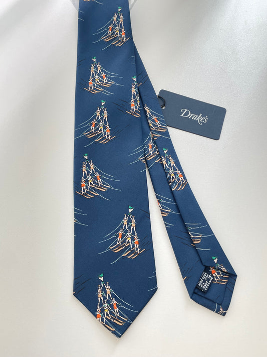 Drakes Human Pyramid Waterskiing Motif Handmade Tie Limited Edition