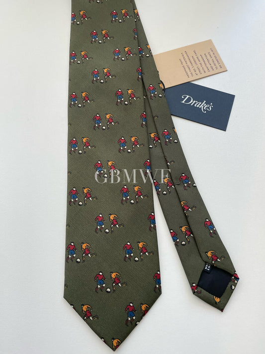 Drakes Handmade Tipped Silk Tie With Tag Football Sports Collection