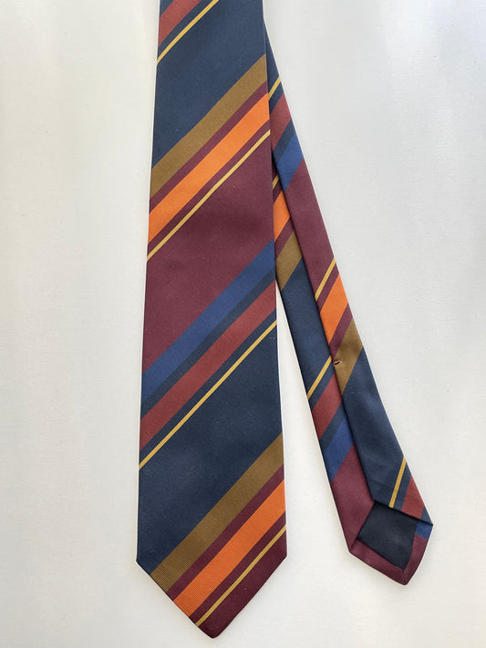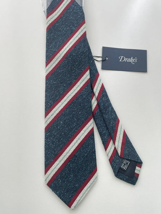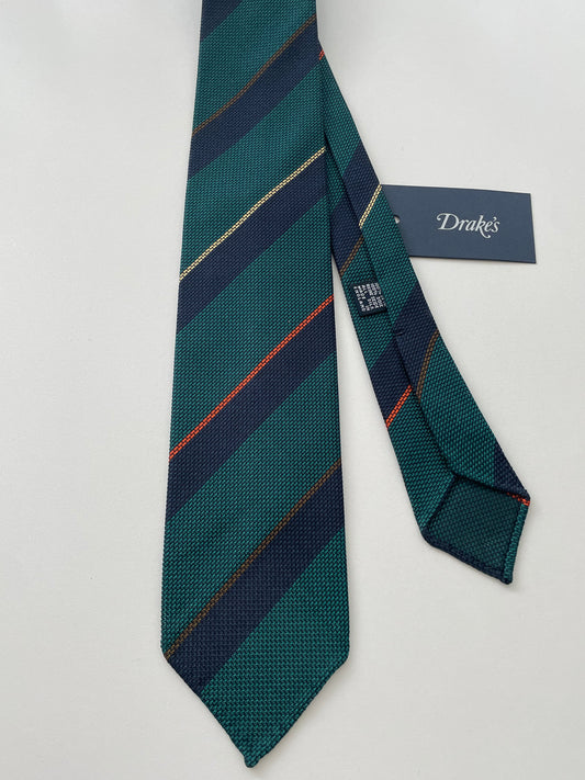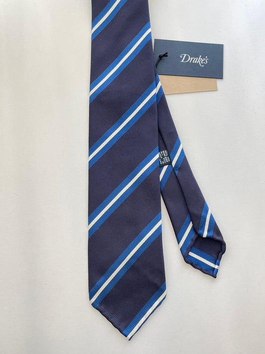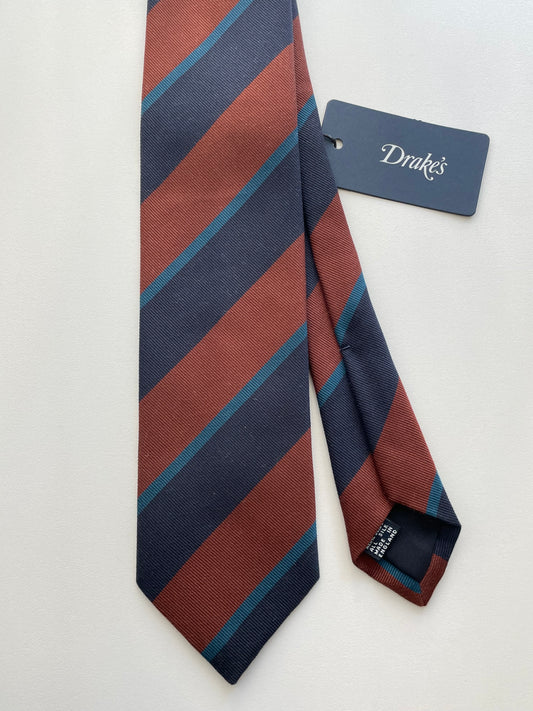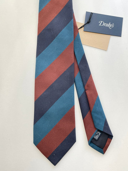 Drakes Hand-rolled Edge Block Multi Stripe Silk Handmade Tie With Tag
