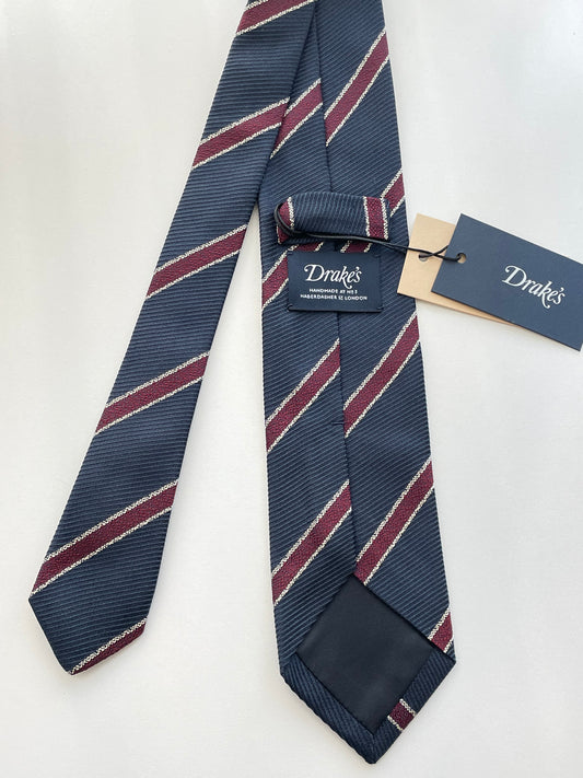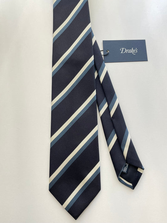 Awaiting StockDrakes Handmade Striped Tipped Silk Tie With Tag