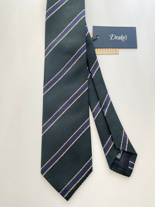 Drakes Handmade Striped Tipped Silk Tie With Tag