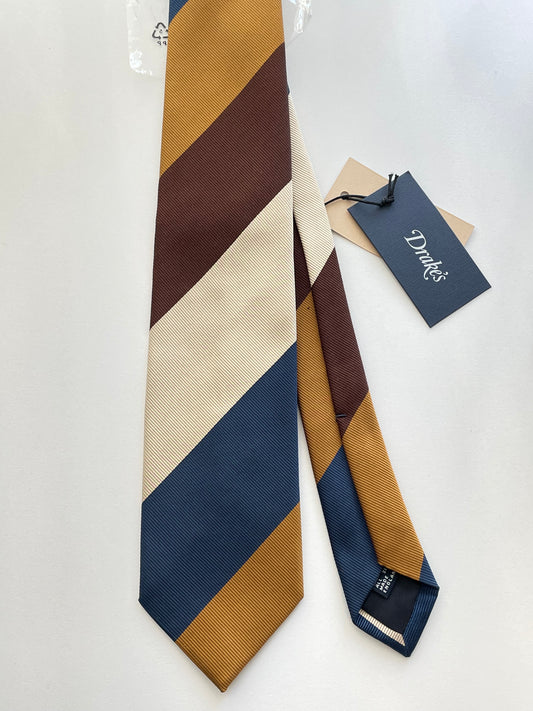 Drakes Multicoloured Block Stripe Handmade Premium Silk Tipped Tie