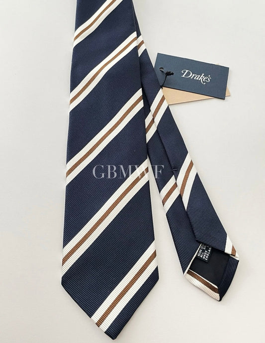 Drakes Handmade Striped Tipped Silk Tie With Tag