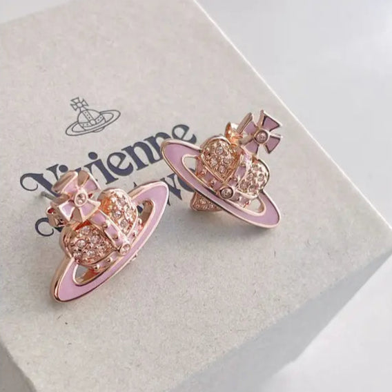 Vivienne Westwood Reverse Heart Studs Earrings Pink Gold/Vintage RO
